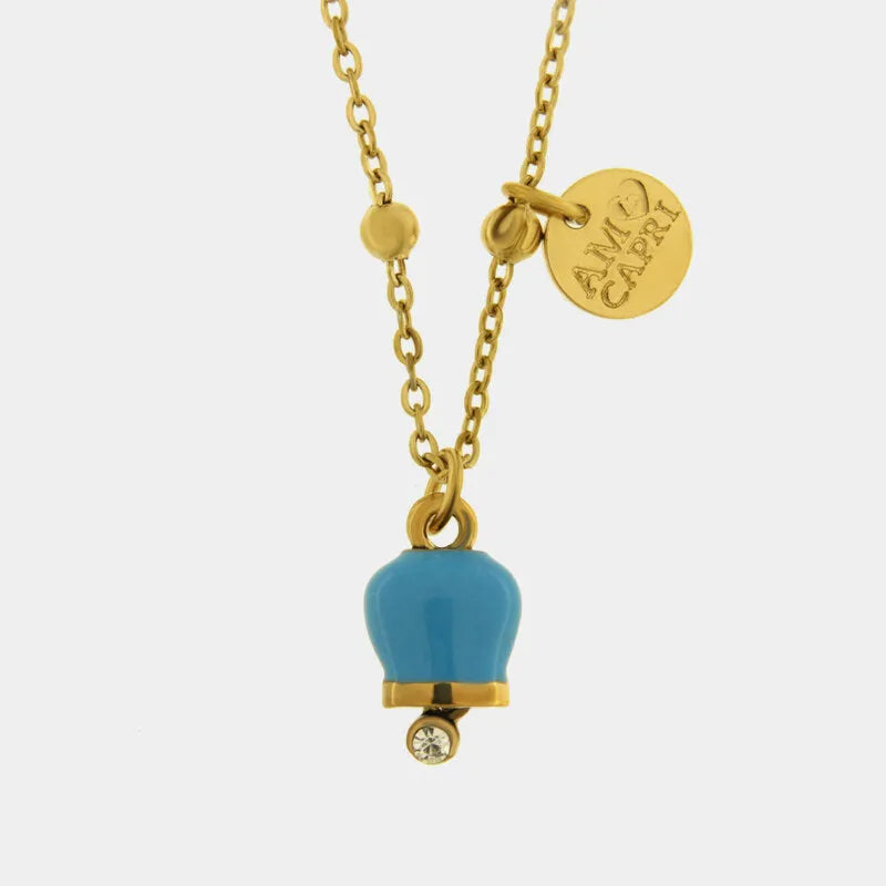 Collana in Acciaio con campenalla verde acqua portafortuna