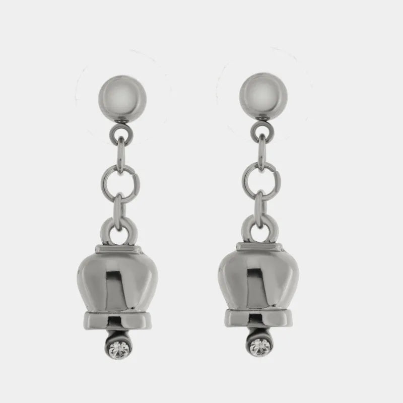 Orecchini in Acciaio con campanelle portafortuna, impreziosite da punto luce