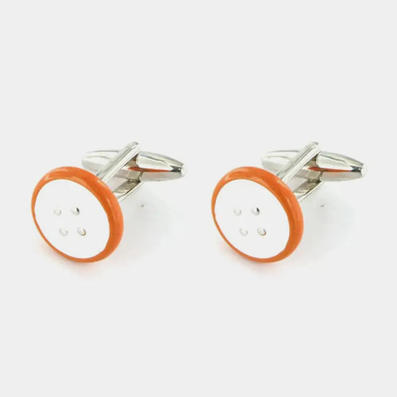 Metal Button-shaped Cufflinks, adorned with orange and white enamel