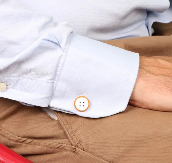 Gemelli in Metallo a forma di bottone, impreziosito da smalto arancio e bianco