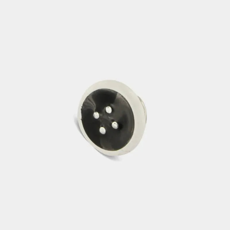 Spilla in Metallo a forma di bottone, impreziosito da smalto nero e bianco