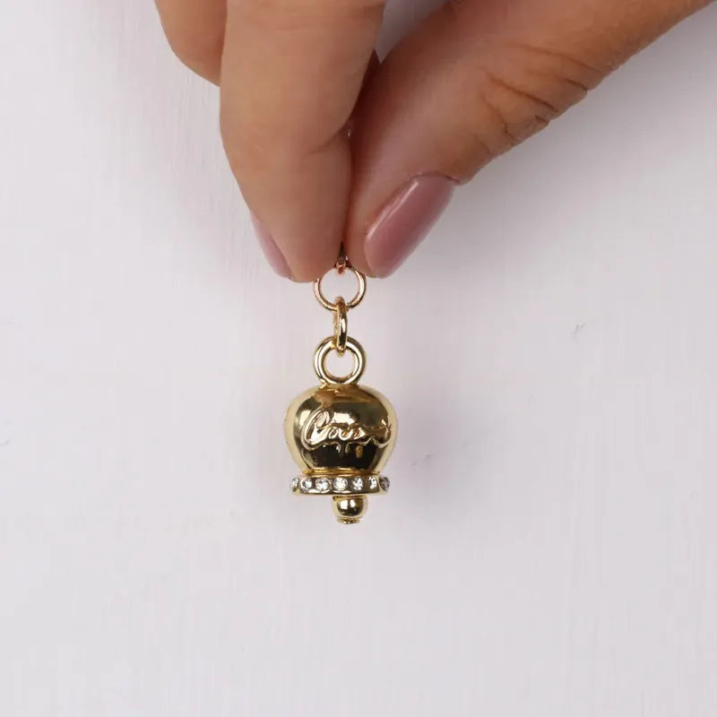 Ciondolo in Metallo campanella con scritta capri e cristalli bianchi
