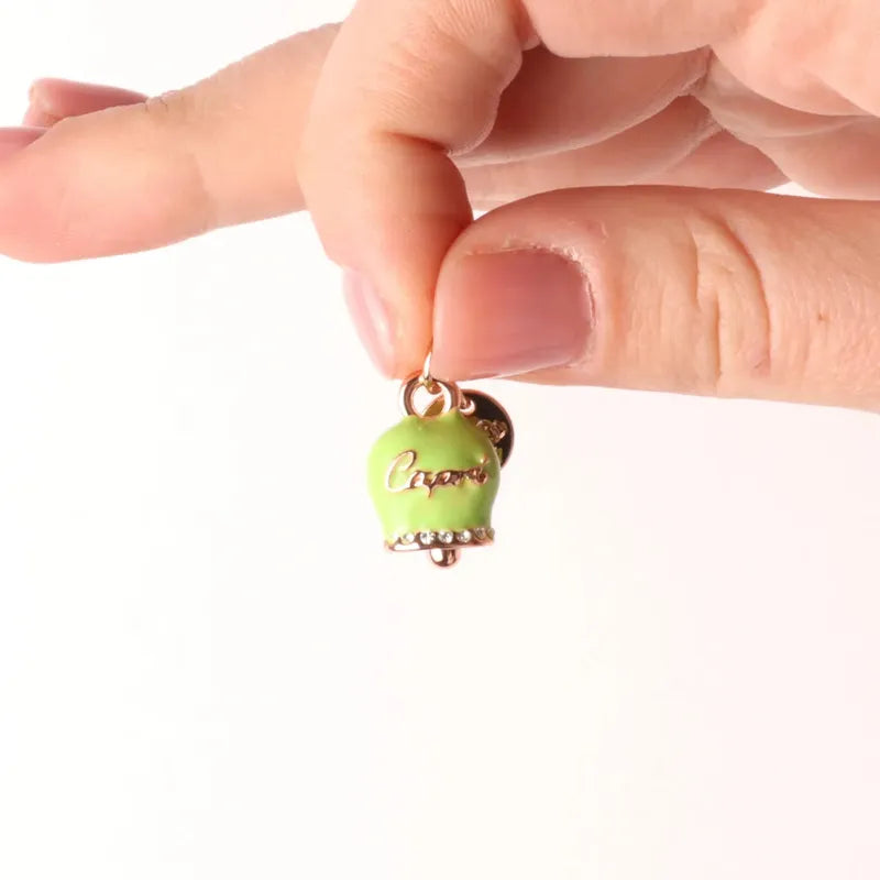 Ciondolo in Metallo campanella con scritta Capri verde lime e cristalli bianchi