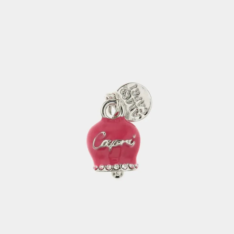 Ciondolo in Metallo campanella portafortuna fucsia con scritta a rilievo Capri e cristalli bianchi