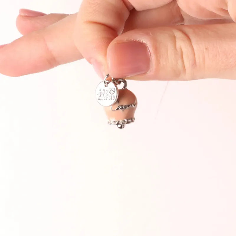 Antique pink metal bell-shaped lucky charm pendant with Capri inscription