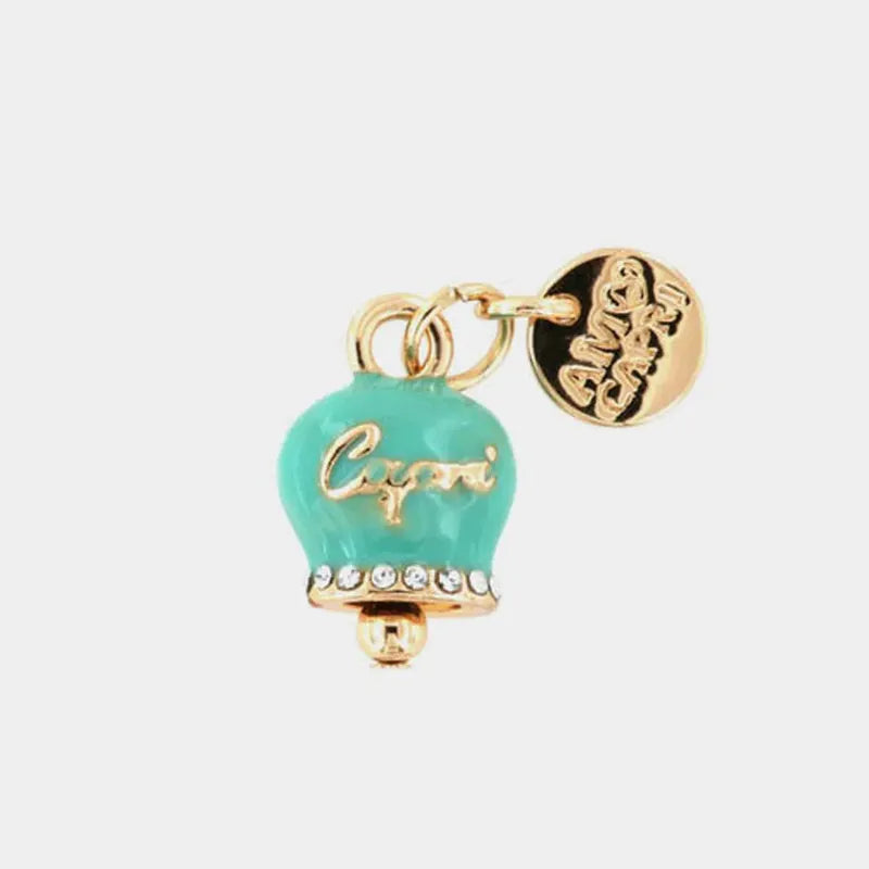 Ciondolo in Metallo campanella smalto verde con cristalli bianchi