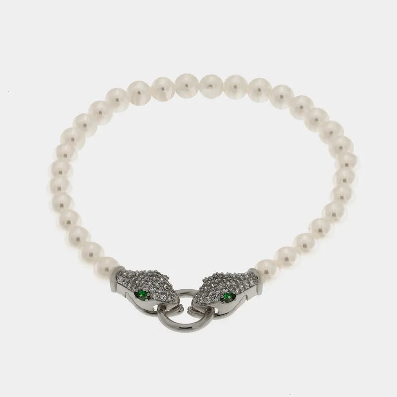 Bracciale in Metallo donna in metallo con sfere satinate e chiusura a forma di serpente argentato con cristalli luminosi