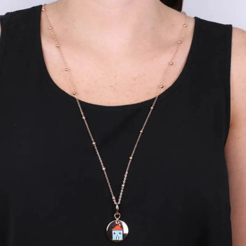 Ciondolo in Metallo con simbolo casa impreziosito da smalti colorati