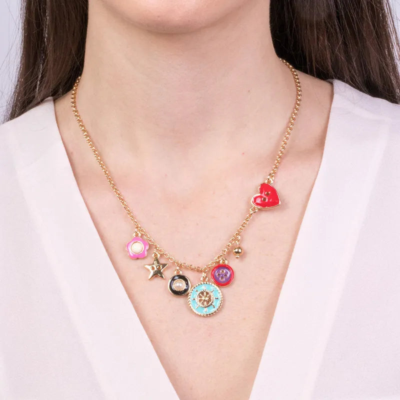 Collana in Metallo con ciondolo timone e bottoni colorati