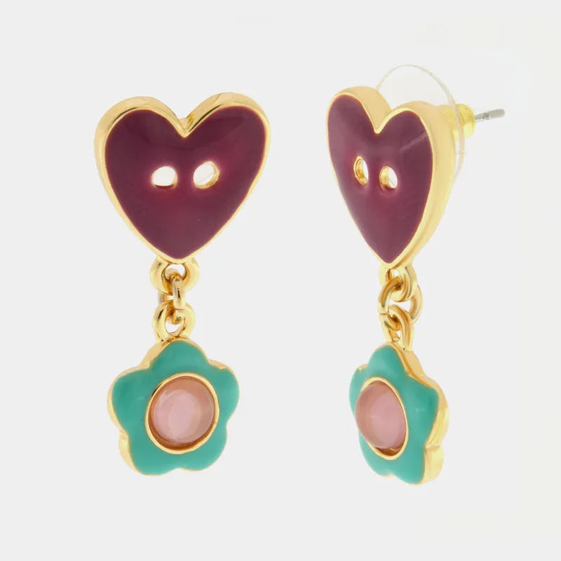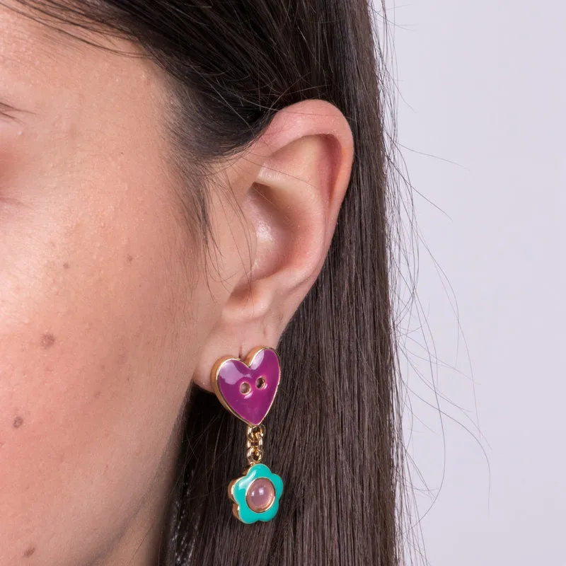 Orecchini in Metallo con cuore viola e fiore verde acqua