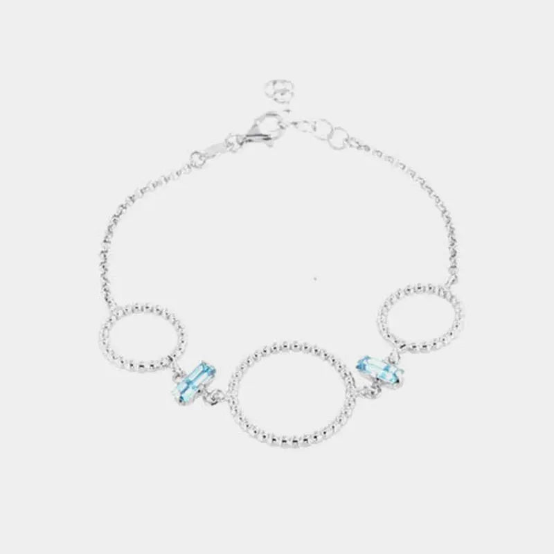 Bracciale in Argento 925 con cerchi puntellati alternati da cristalli colorazione acquamarina