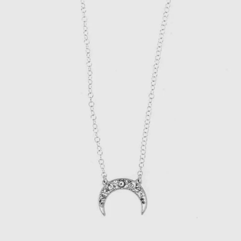 925 Silver Necklace crescent moon, adorned with crystals