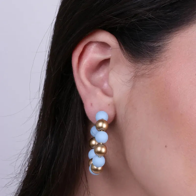 Orecchini in Metallo a cerchio con pietre azzurre e oro