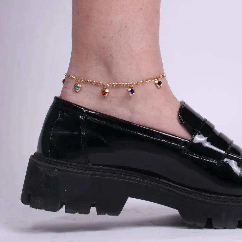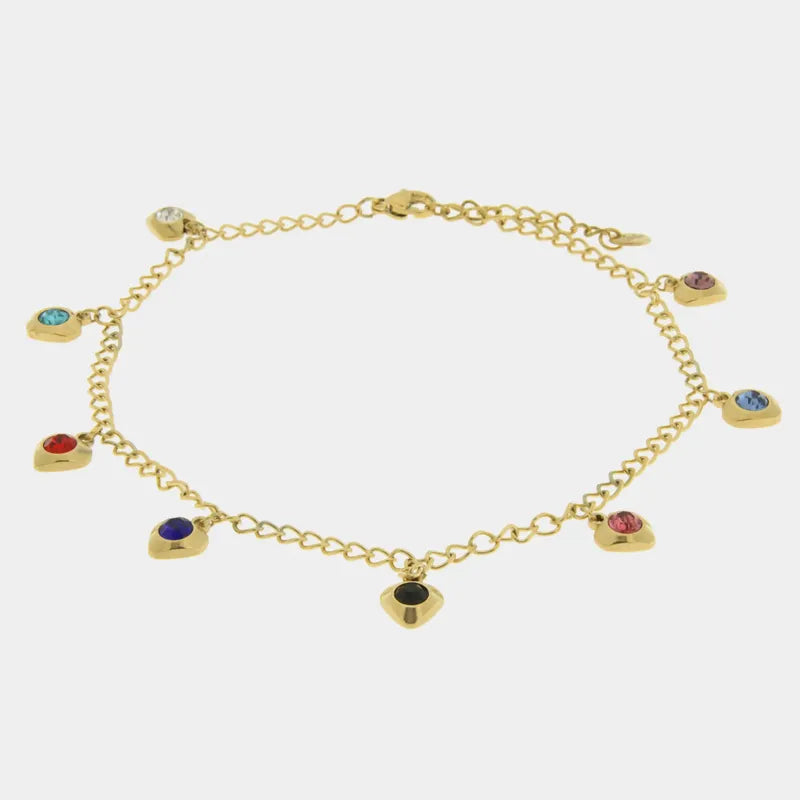 Cavigliera in Acciaio con cristalli colorati pendenti