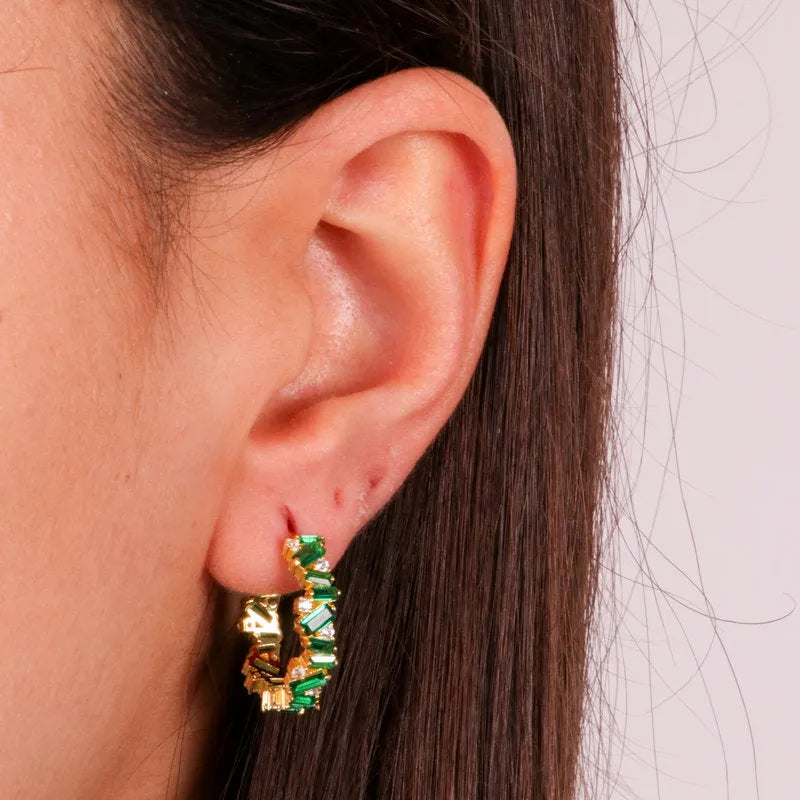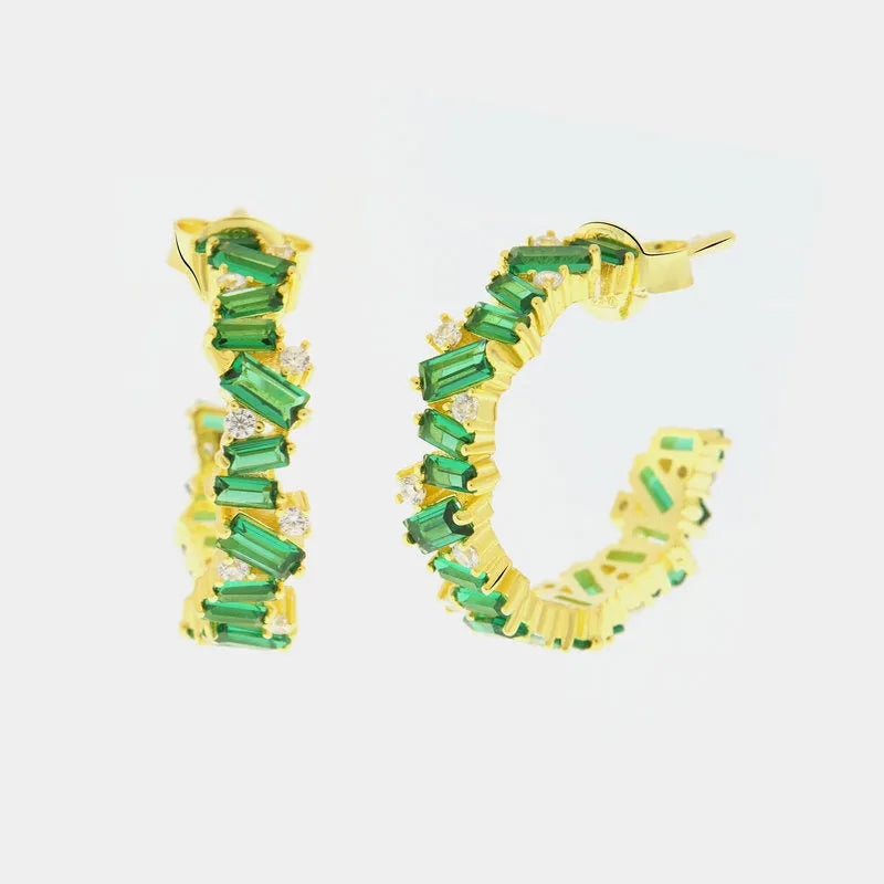 Orecchini in Argento 925 semicerchio con zirconi nelle sfumature del verde