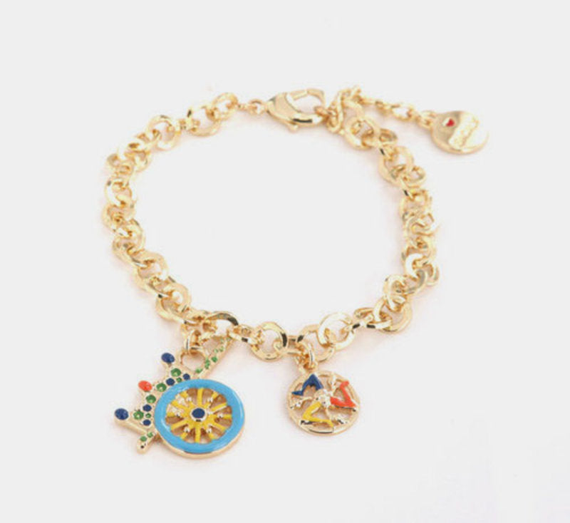 Bracciale in Metallo maglia rolò, con carretto siciliano pendente impreziosito da smalti colorati