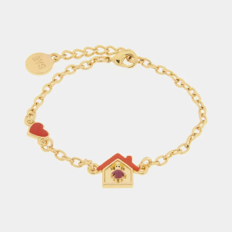 Bracciale in Metallo con casa, bambina e cuore rosso