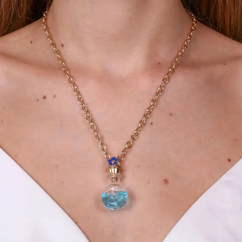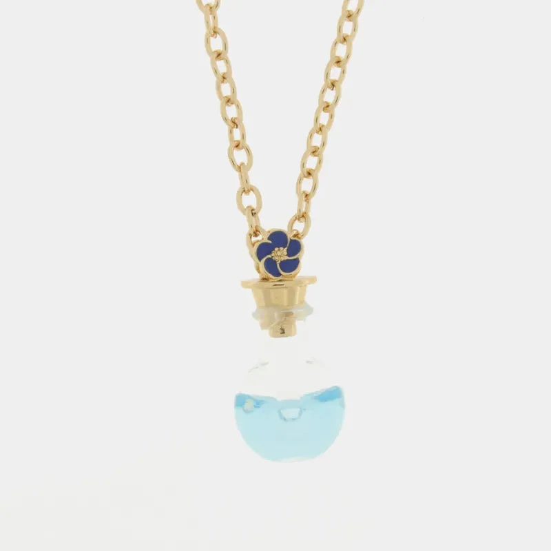 Metal Necklace with Small Bottle and Hanging Blue Flower