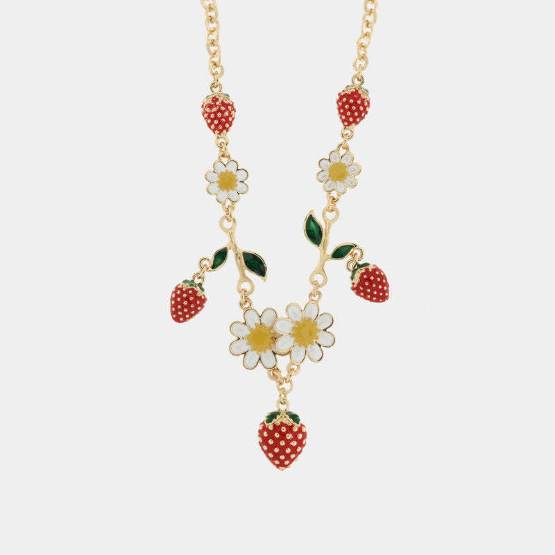 Collana in Metallo girocollo con fragola e margerite pendenti