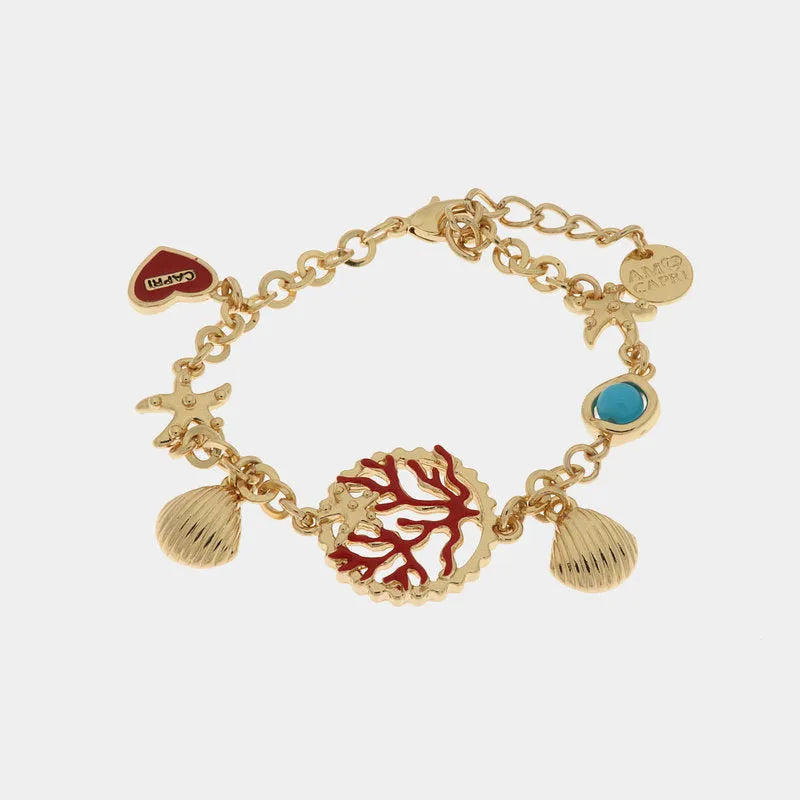 Bracciale in Metallo in stile marino con coralli, stella marina e conchiglie