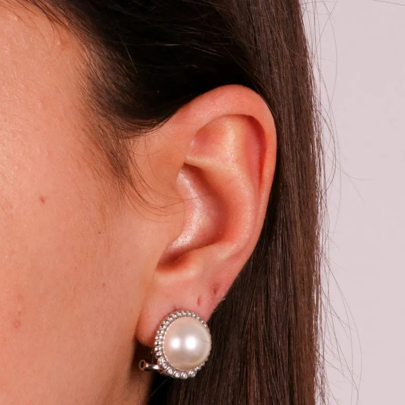 Orecchini in Argento 925 a lobo con perla centrale e contorno in zirconi bianchi