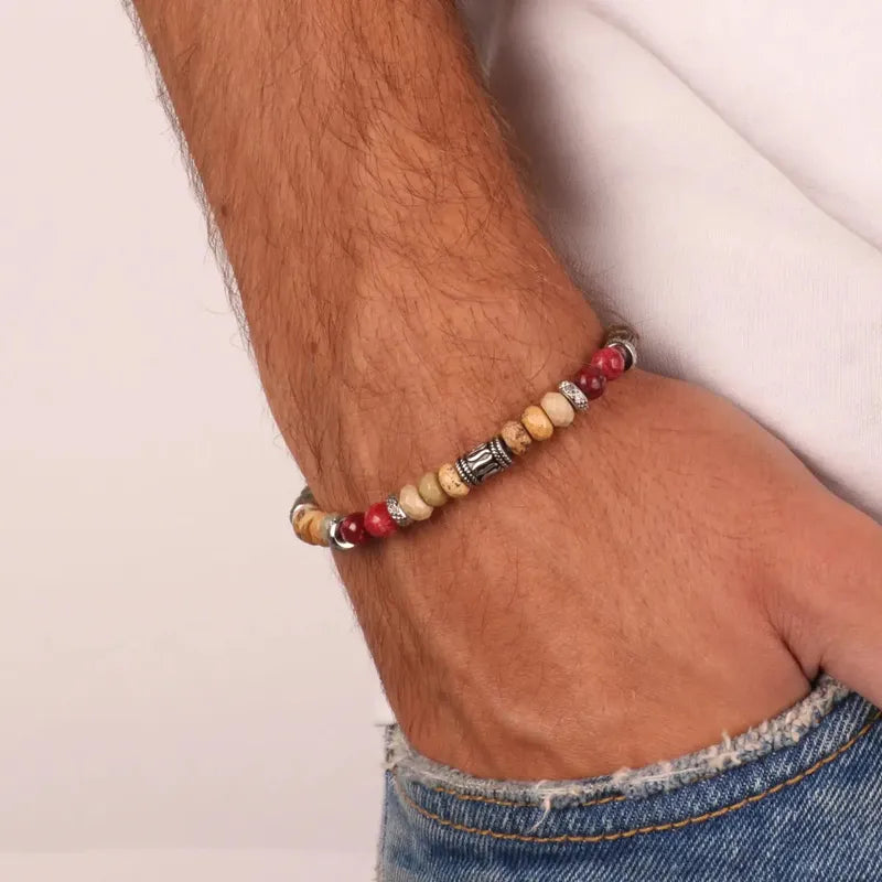 Bracciale in Acciaio con sfere multicolor e con elemento centrale in acciaio