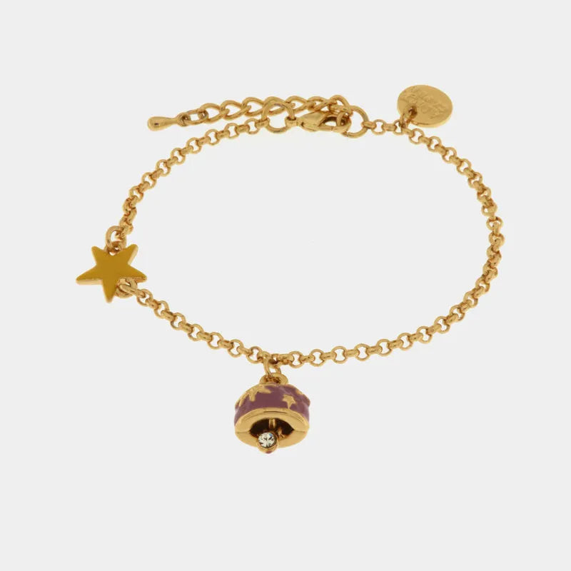Bracciale in Metallo con campanella in smalto viola impreziosita da stelle e sole