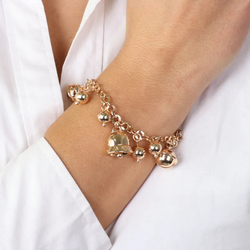 Bracciale in Metallo multiciondoli con sonagli, campana caprese e sferette lisce
