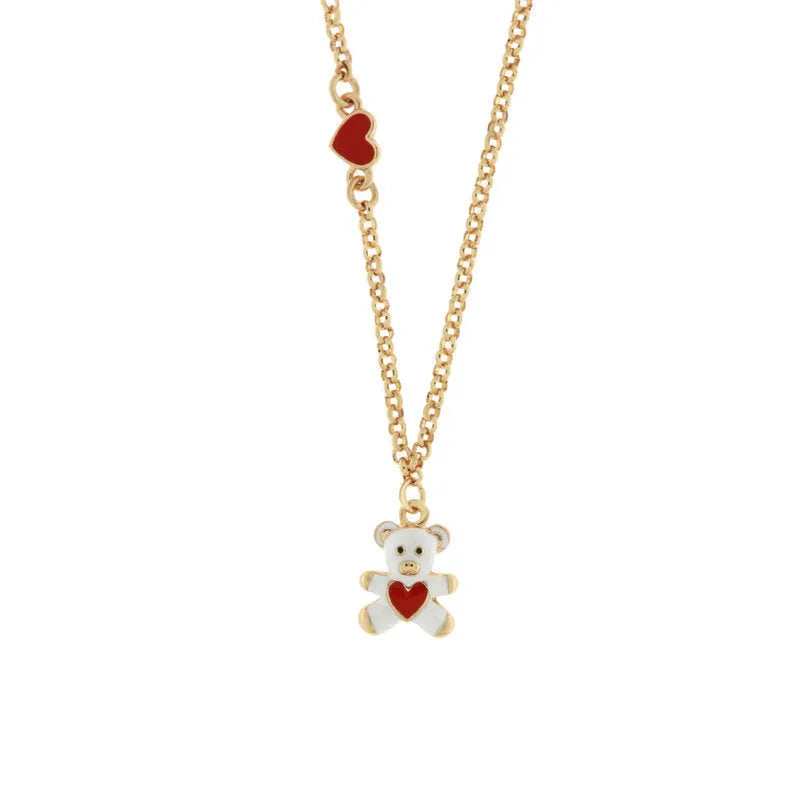 Collana in Metallo con orso bianco e cuore rosso