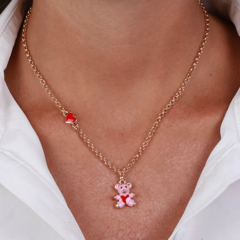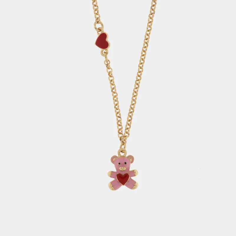 Collana in Metallo con orso rosa e cuore rosso