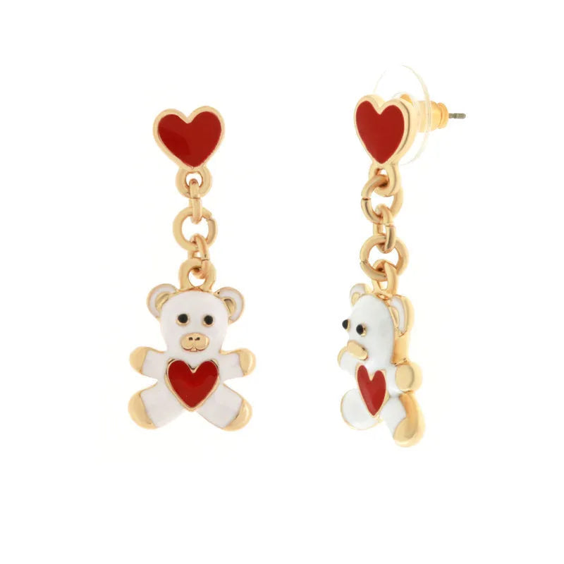 Orecchini in Metallo con orsetto bianco e cuore rosso