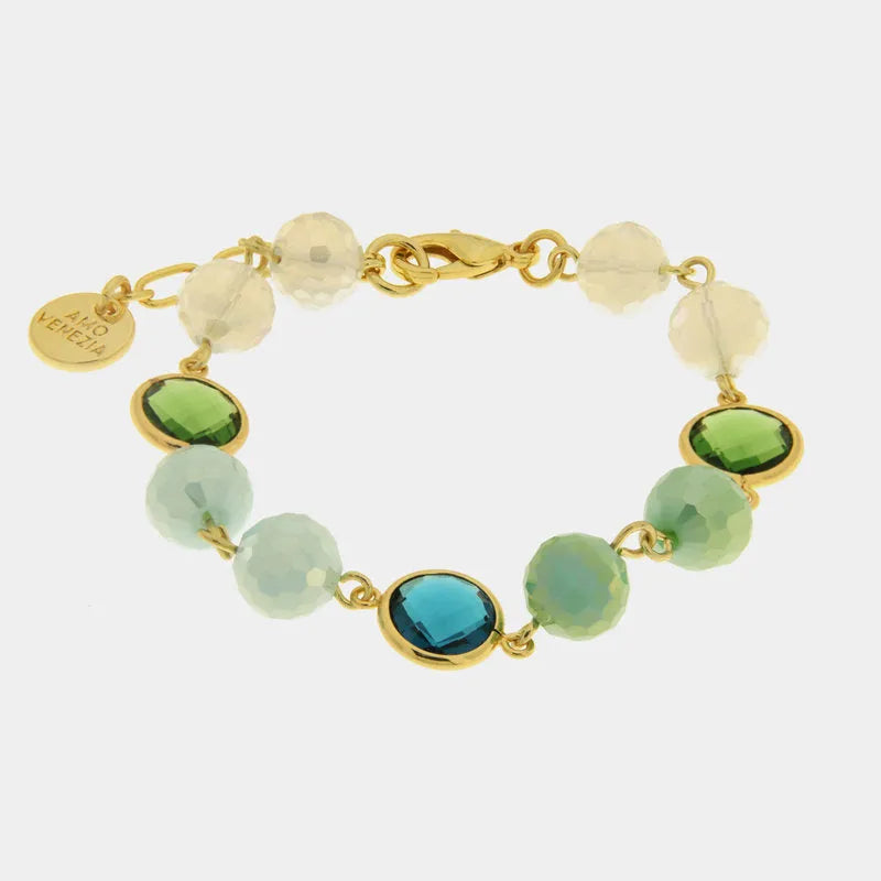 Bracciale in Metallo con cristalli e sfere colorate verdi