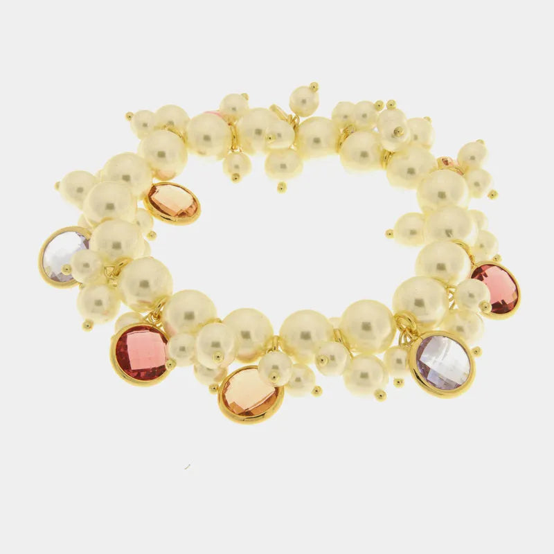 Bracciale in Metallo con perle e crisalli colorati rosa