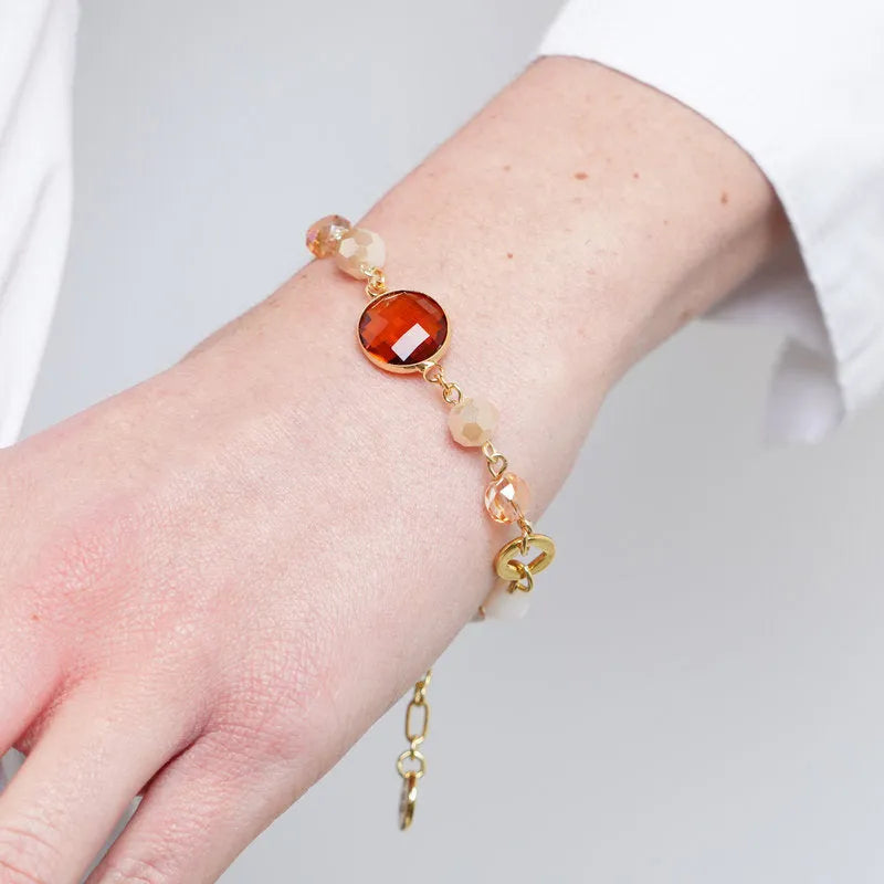 Bracciale in Metallo con sfere e cristalli marroni
