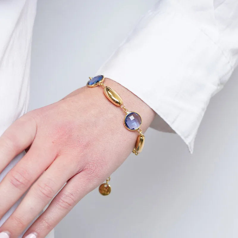Bracciale in Metallo con sfere ovali e cristalli blu