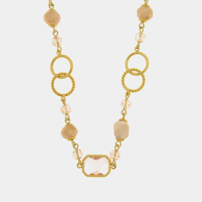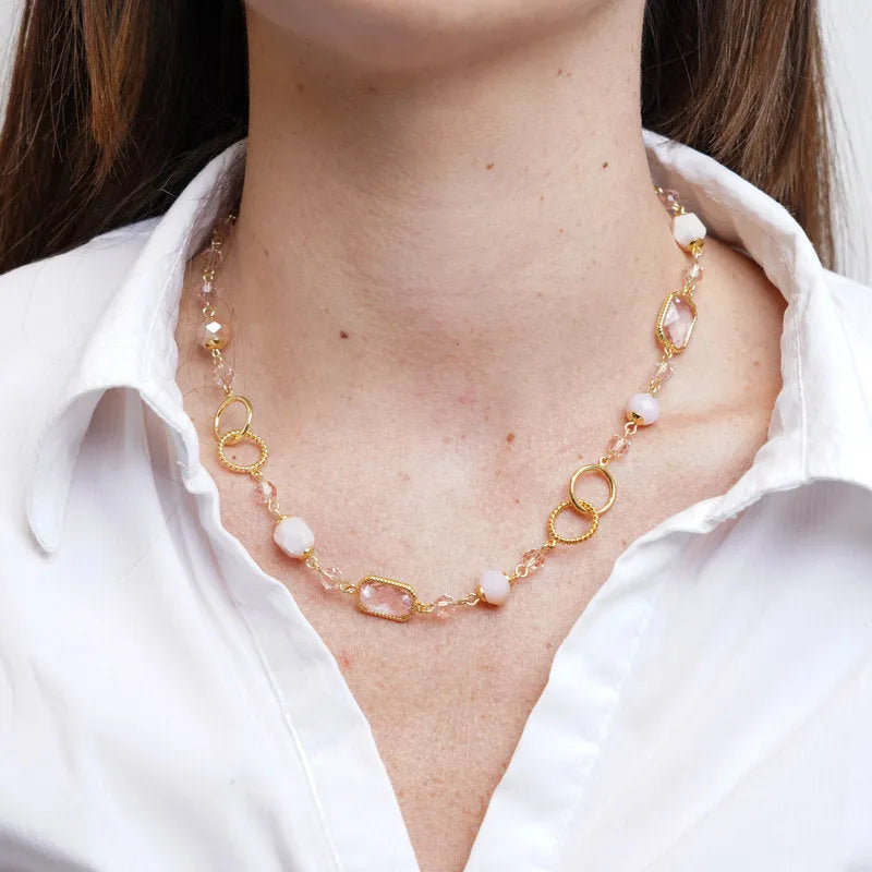 Collana in Metallo con cerchi intrecciati e cristallli rosa