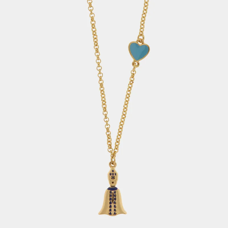Collana in Metallo con pendente san gennaro e cuore azzurro