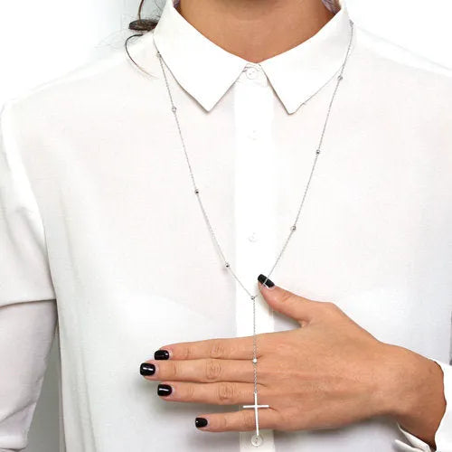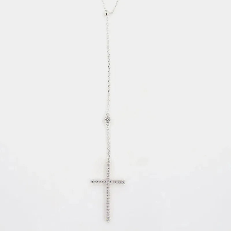 925 Silver Necklace rosary with pendant cross adorned with zircons
