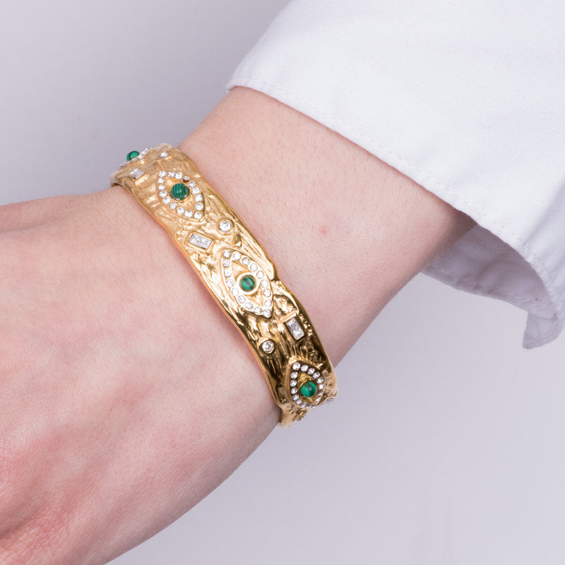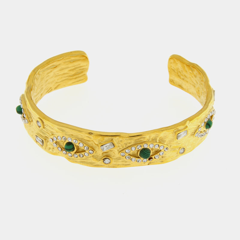Bracciale in Acciaio semi rigido impreziosito da occhi verdi