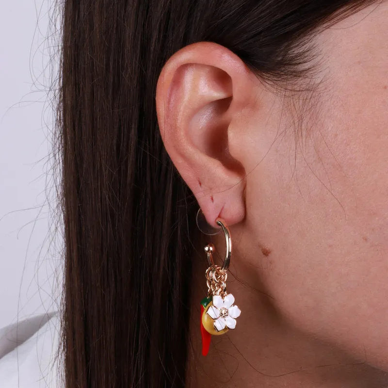 Orecchini in Metallo con limoni e cornetto