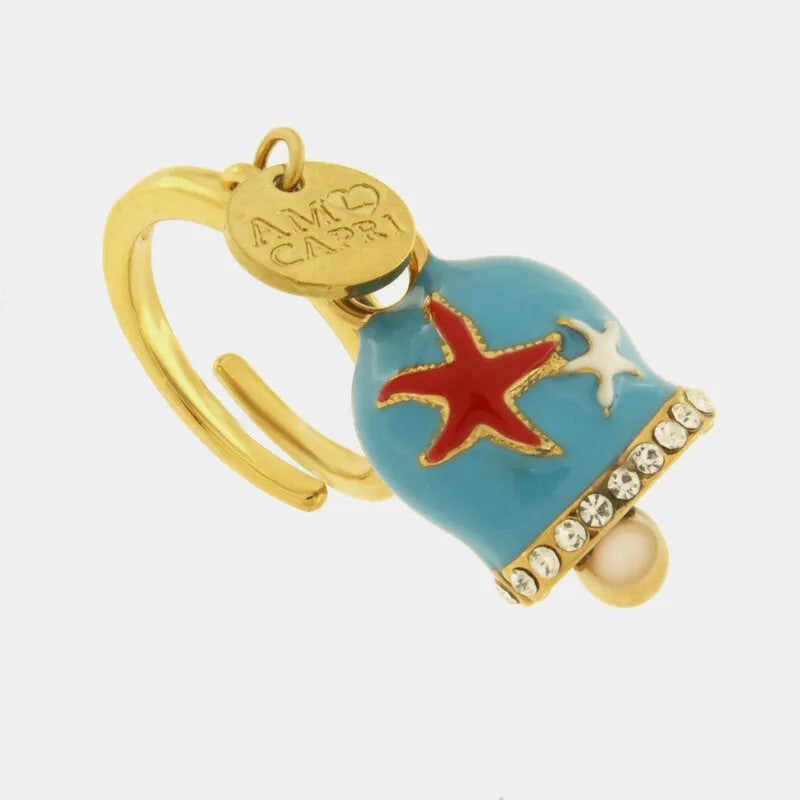 Anello in Acciaio campanella Capri azzurra con stelle marine