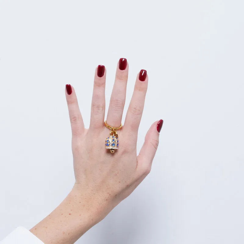 Anello in Acciaio campanella Capri con pois blu