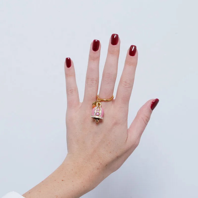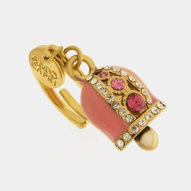 Anello in Acciaio campanella Capri rosa con pois