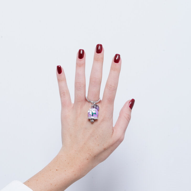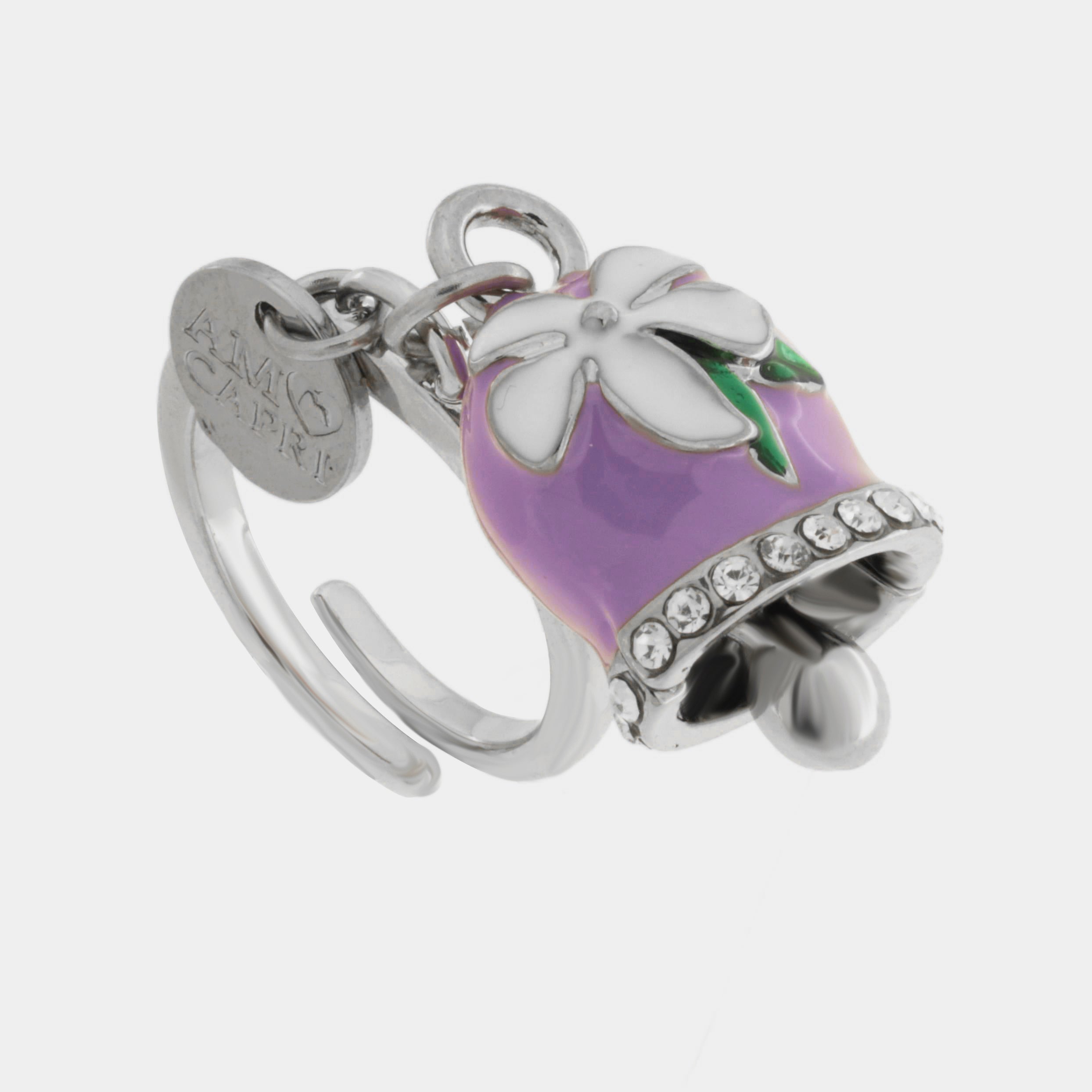 Anello in Acciaio campanella Capri viola con fiore bianco
