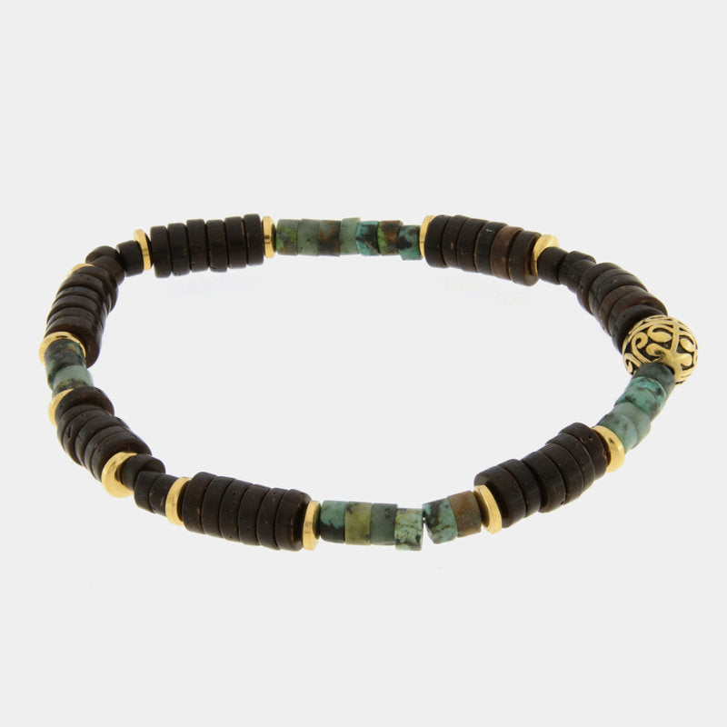 Bracciale in Acciaio con perline nere e dettagli in oro