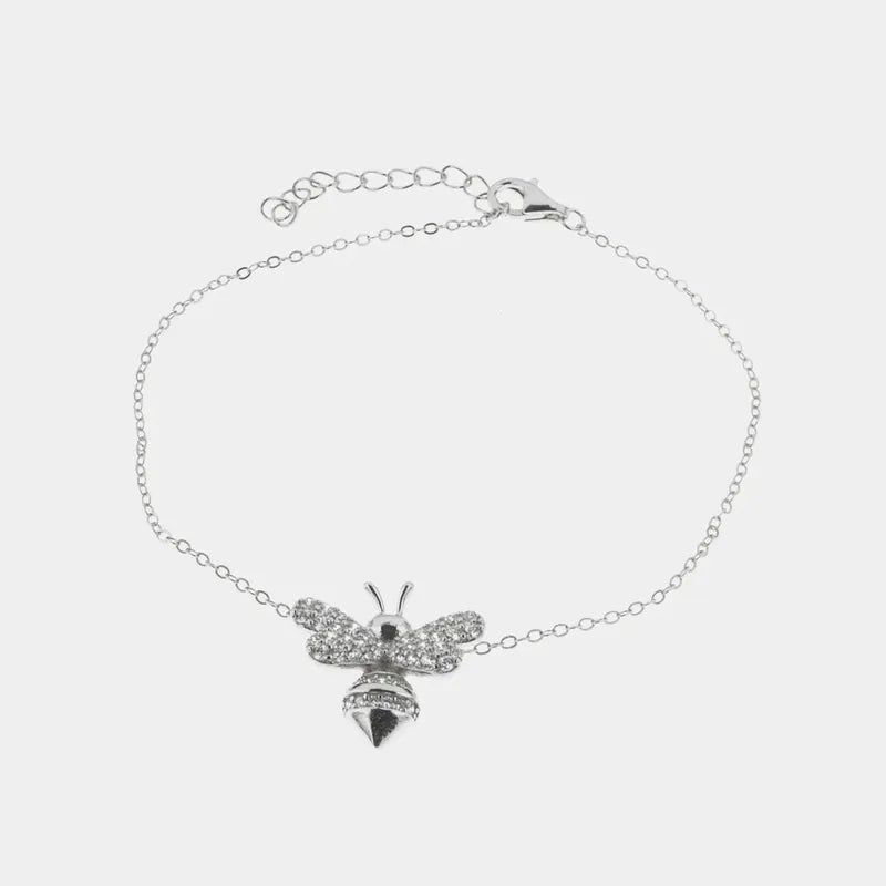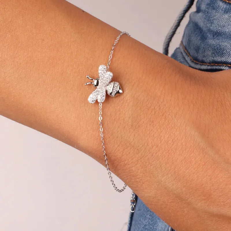 925 Silver Bracelet with a bee-shaped detail adorned with white zircons