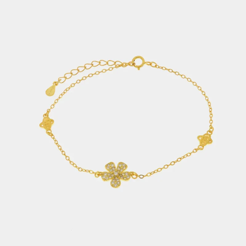 925 Silver Bracelet with flower adorned with white zircons and planets