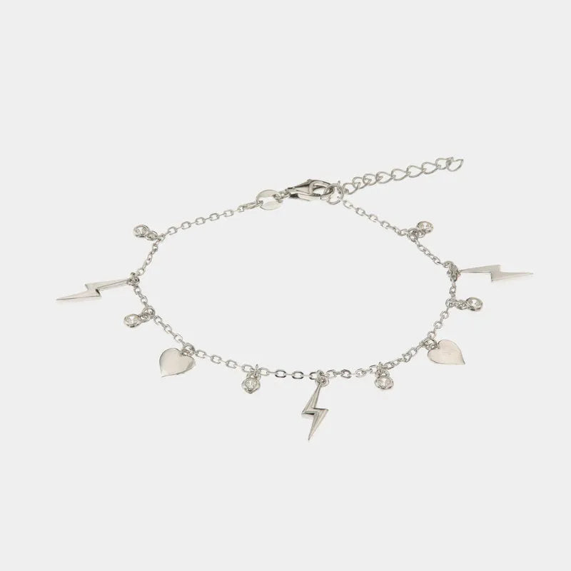 Bracciale in Argento 925 con fulmine e cuore alternati da gocce di zirconi bianchi
