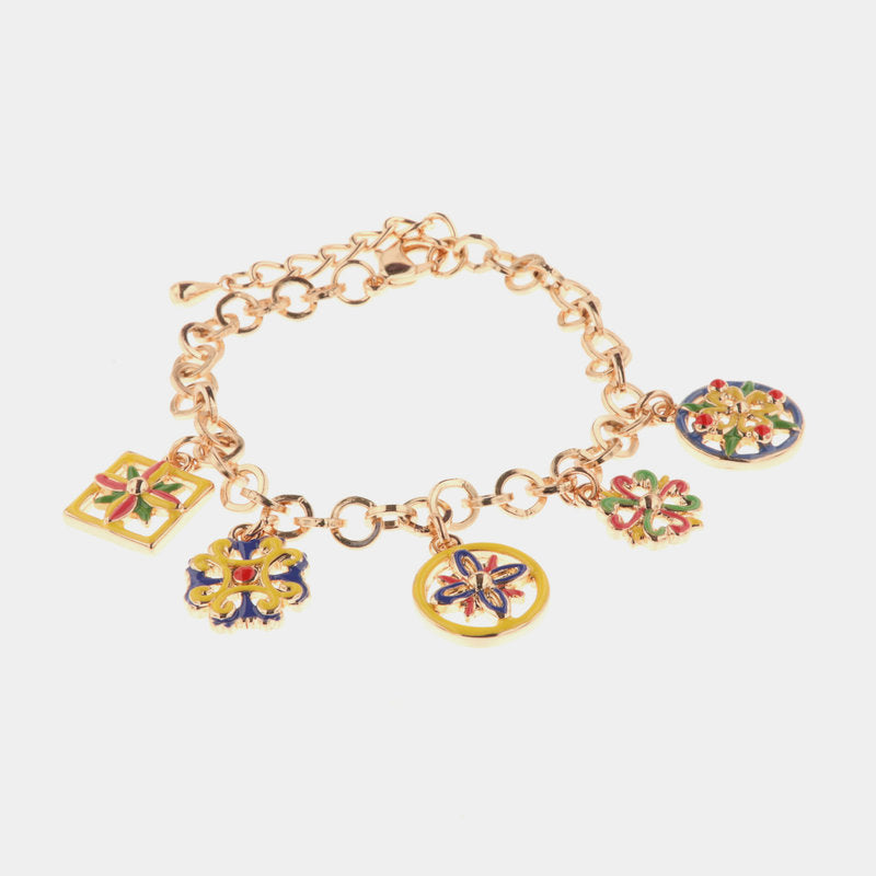 Bracciale in Metallo con pendenti a forma di maioliche colorate