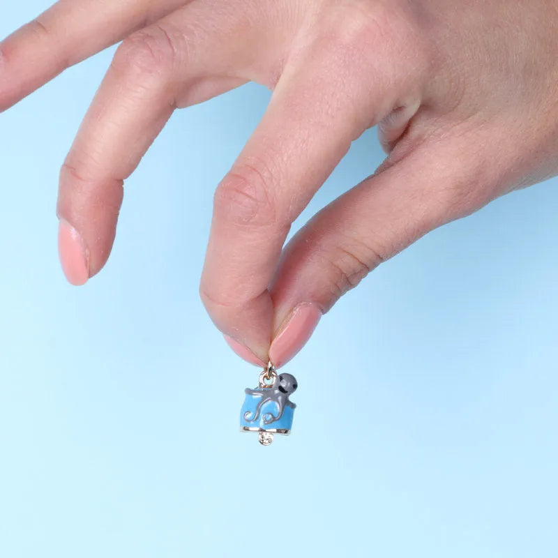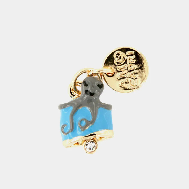 Ciondolo in Metallo con campanella portafortuna smaltata e polipetto, impreziosita da smalti colorati e cristalli